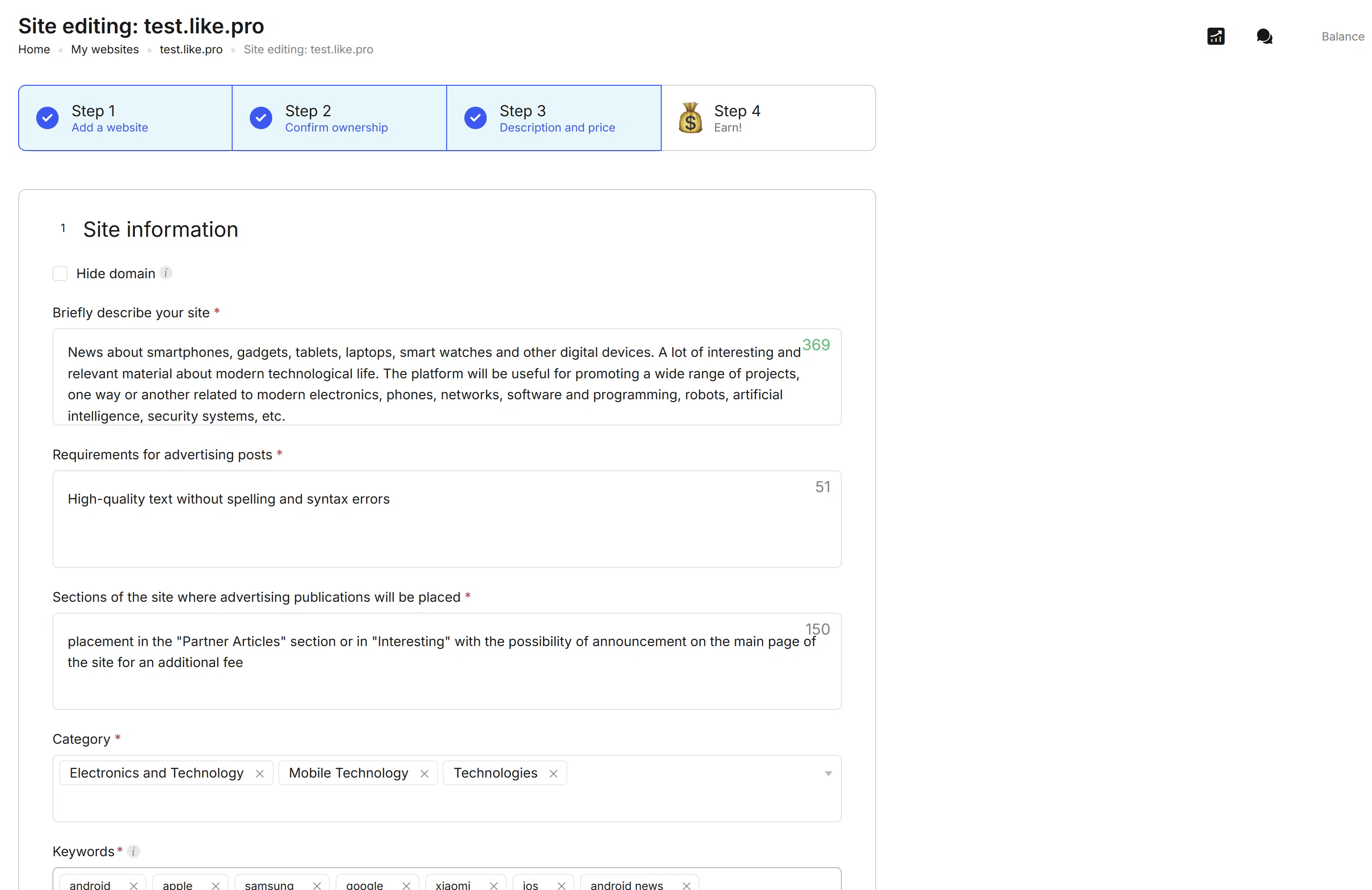 Each website owner sets their own policy — Collaborator does not influence this decision. However, the maximum fee for edits is capped at 20% of the current placement price.